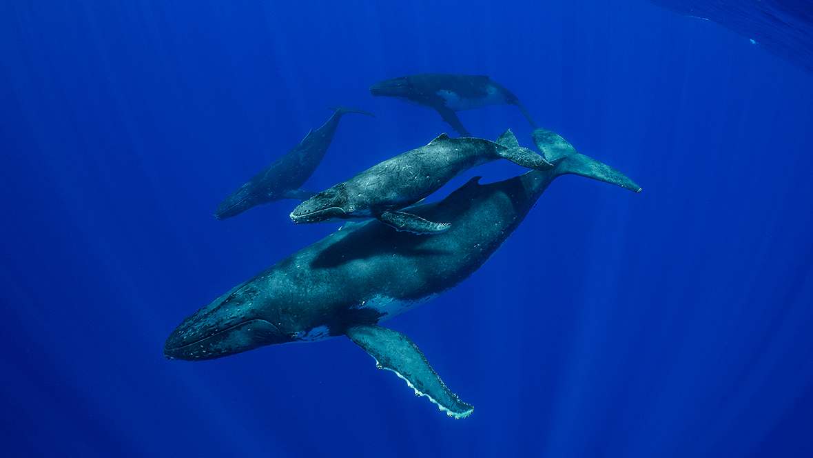“When you hear it, it’s like nothing else on Earth,” Skerry observes. “You’re in the water, and even if you’re not close to them, it resonates through your body. You vibrate with this haunting sound. We call it a song, but it’s this lyrical melody that might sound in places like a creaking door, or a crying baby, or someone hiccupping. It’s all these little chirps and moans in high and low frequencies. Incredible.”