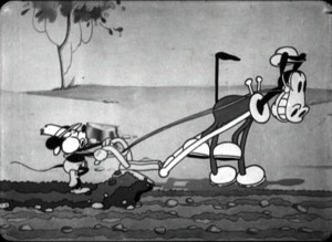 Plowboy, The (film) Mickey Mouse cartoon; released in 1929. Directed by Walt Disney. When Mickey and Minnie attempt to milk a cow, they meet Clarabelle Cow and Horace Horsecollar (in their first cartoon), and the two couples play tricks on each other.