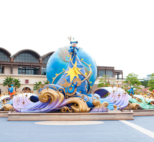 A Magical Hat approximately eight meters tall magically appeared out of the DisneySea AquaSphere. This is where the Disney characters from all of the themed ports come together.