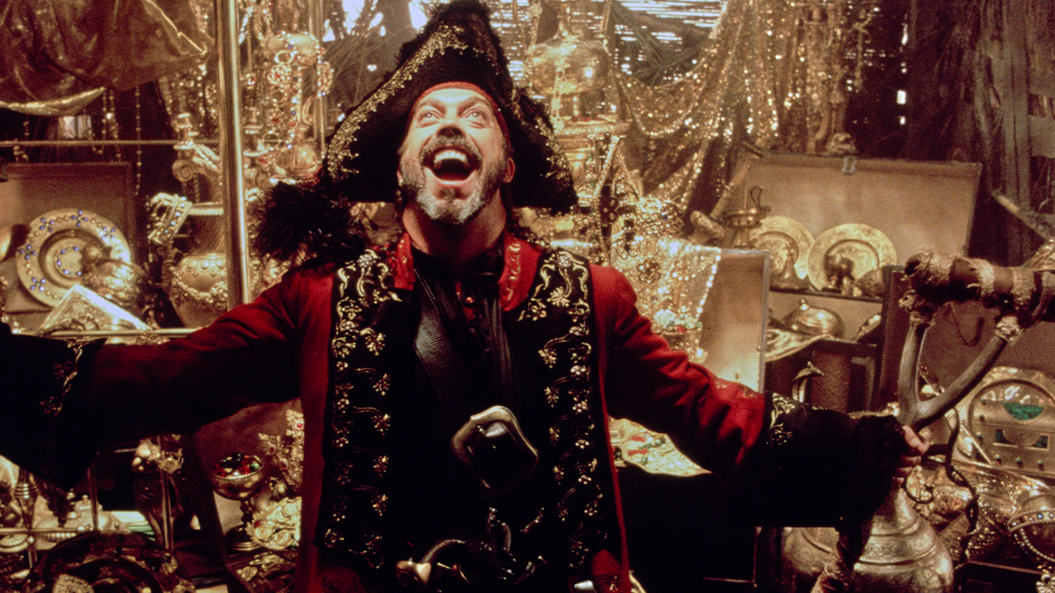 For the Muppets’ fifth movie, the filmmakers wanted another classic story to follow the 1992 hit, The Muppet Christmas Carol. “Christmas Carol was a genre classic tale,” director Brian Henson (son of the Muppets creator and Disney Legend Jim Henson) explained, “but we wanted this one to be a lot funnier, more absurd and with a lot more action. Treasure Island is where we ended up, but it’s not a very faithful adaptation. We really twisted the story in order to make it funnier. There is a lot of action and intrigue on the high seas, and it works tremendously well. Of course, we have Kermit, Miss Piggy, Fozzie Bear, Gonzo, and Rizzo in starring roles, and we have found parts for all of the others.” Of Captain Smollett, Kermit said, “I try to play him the way Robert Louis Stevenson wrote him in his book, only I haven’t found any mention that Smollett was a frog—so that’s the one liberty I took with my portrayal.” As for her appearance as Benjamina, Miss Piggy stated, “The role has everything that moi’s fans, moi’s agent, and moi’s lawyers demand. Lots and lots of moi! Eat your heart out, Streep!” Other members of the Muppet troupe include Sam the Eagle as overly strict first mate Mr. Arrow, Dr. Bunsen Honeydew as Dr. Livesey, the Swedish Chef as the boar tribe’s cook (he even has a false boar’s nose)—and Statler and Waldorf as the ship’s masthead.